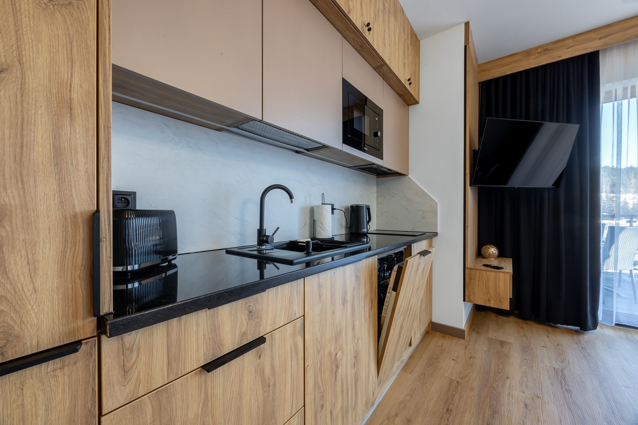 • lodówka, toster, płyta kuchenna, czajnik elektryczny, kuchenka mikrofalowe