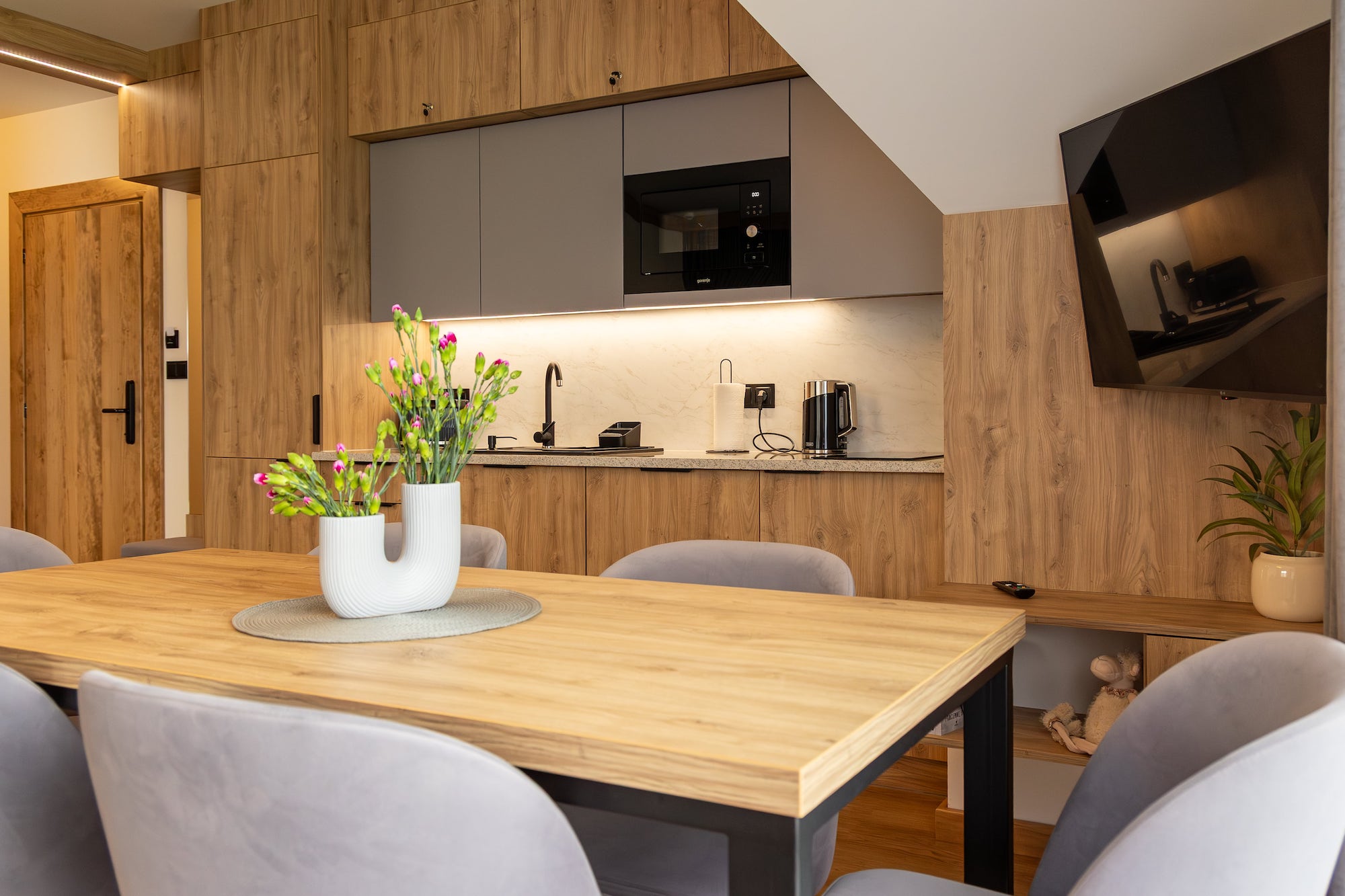 • niezbędne akcesoria kuchenne (talerze, szklanki, sztućce, garnki)