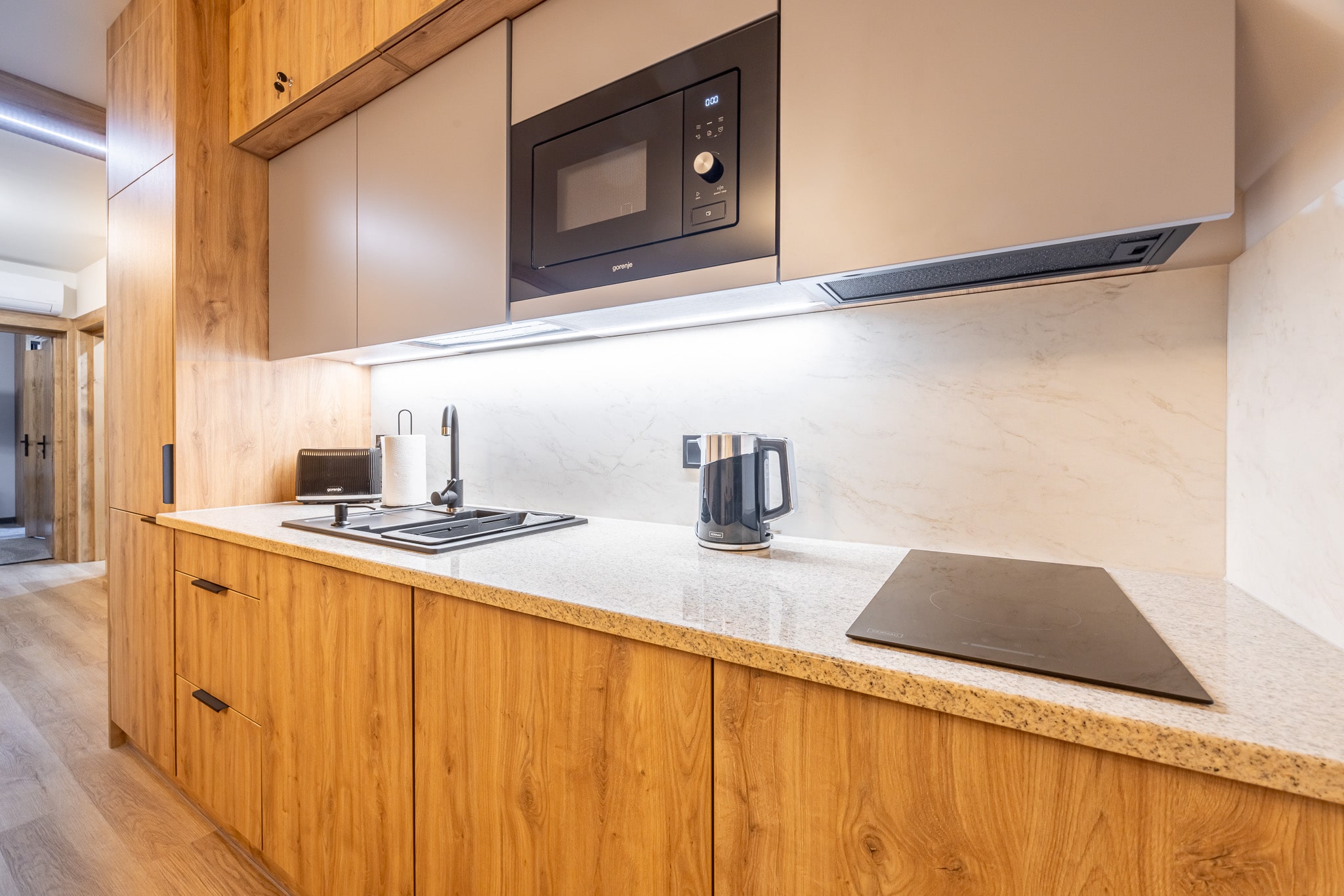 • lodówka, toster, płyta kuchenna, czajnik elektryczny, kuchenka mikrofalowe